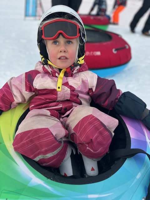 Taigi mūsų kasdieninė rutina atrodė taip: pirmą pusę dienos aš arba vyras lieka su mažąja, per pietus visa grupė atkeliauja iki žaidimų kambario, kuriame papietaujame, po pietų mudu su vyru pasikeičiame ir slidinėjame toliau.